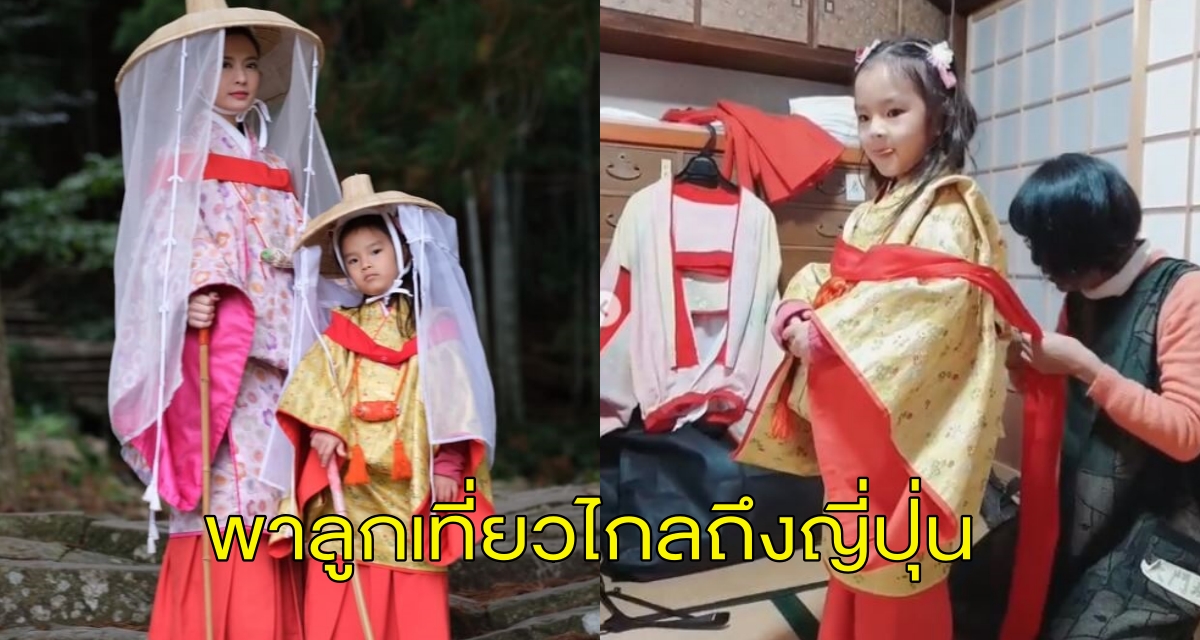 แอฟ ทักษอร พาลูกสาวตะลุยแดนญี่ปุ่น ใส่ชุดพื้นเมืองทั้งคู่