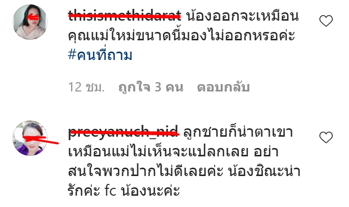 ชาวเน็ตเข้ามาให้กำลังใจเช่น น้องออกจะเหมือนคุณแม่ใหม่ขนาดนี้มองไม่ออกหรอค่ะ #คนที่ถาม ,ลูกชายก็น่าตาเขาเหมือนแม่ไม่เห็นจะแปลกเลย อย่าสนใจพวกปากไม่ดีเลยค่ะ น้องชิณะน่ารักค่ะ fc น้องนะค่ะ เป็นต้น