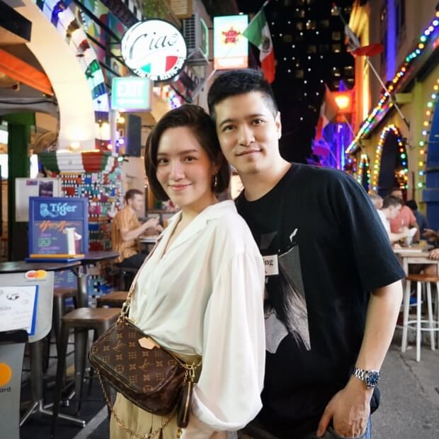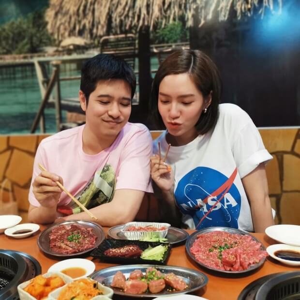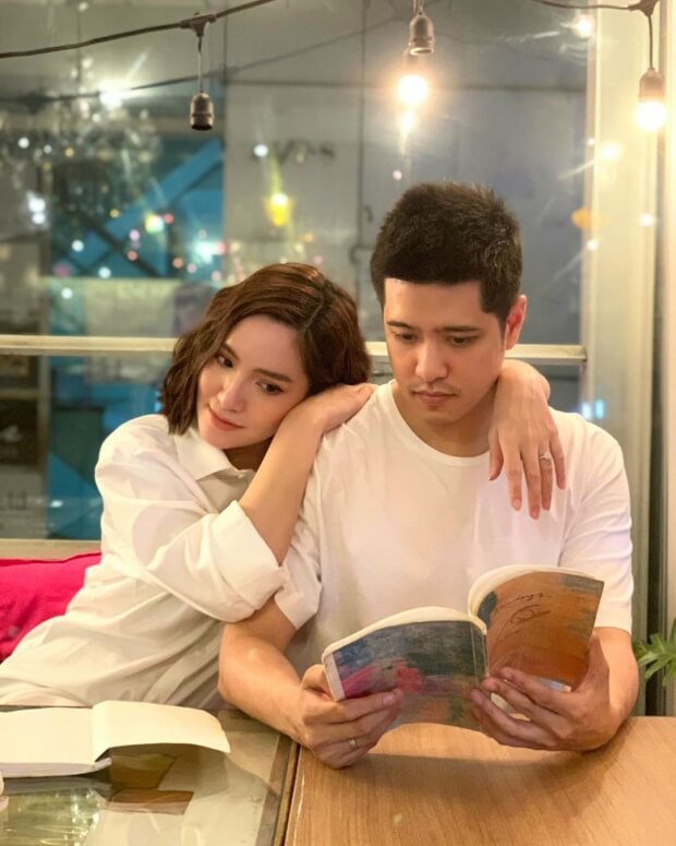 แลเป็นไทยว่า (ขอบคุณที่รักฉันเสมอแม้ในวันที่อะไรๆ ดูไม่เป็นใจ ขอบคุณที่อดทนกับฉันไม่ว่าจะเป็นเรื่องเล็กหรือใหญ่ ขอบคุณที่ทำให้เห็นว่ารักแท้เป็นยังไง และฉันรักเธอหมดหัวใจและจิตวิญญาณของฉัน สุขสันต์วันครบรอบที่รัก” )