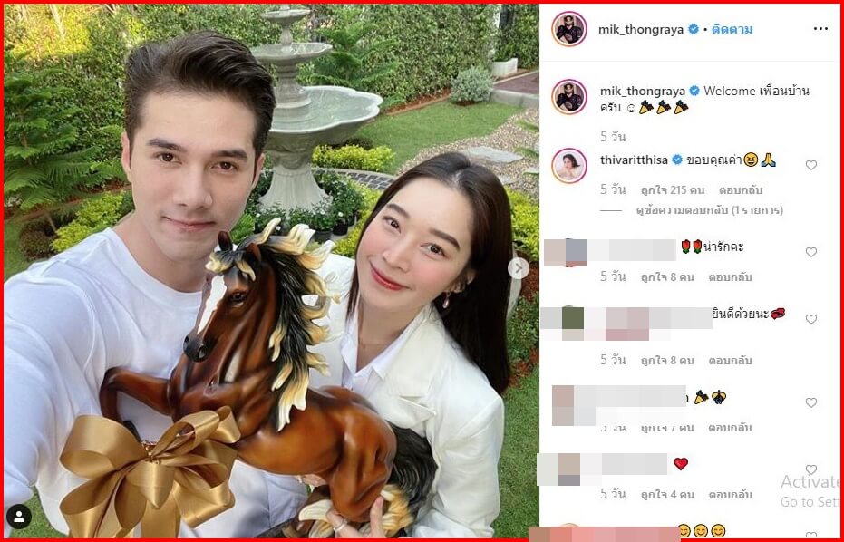 ล่าสุด มิกซ์ ทองระย้า ได้โพสต์ภาพมาร่วมแสดงความยินในวันขึ้นบ้านใหม่ของสาวฐิสาพร้อมข้อความว่า “Welcome เพื่อนบ้านครับ” อะอะไม่ต้องแปลกใจว่าหนุ่มมิกซ์นางมาได้ยังไง ก็เพราะว่านางอยู่หมู่บ้านเดียวกับสาวฐิสา เพราะฉะนั้นการไปมาหาสู่ก็ง่าย ซึ่งก่อนหน้านี้ตอนที่บ้านของสาวฐิสายังสร้างไม่เสร็จหนุ่มมิกซ์ก็เเวะเวียนมาตลอด แต่เเค่สถานะเพื่อนบ้านนะจ๊ะไม่ใช่คนรู้ใจ