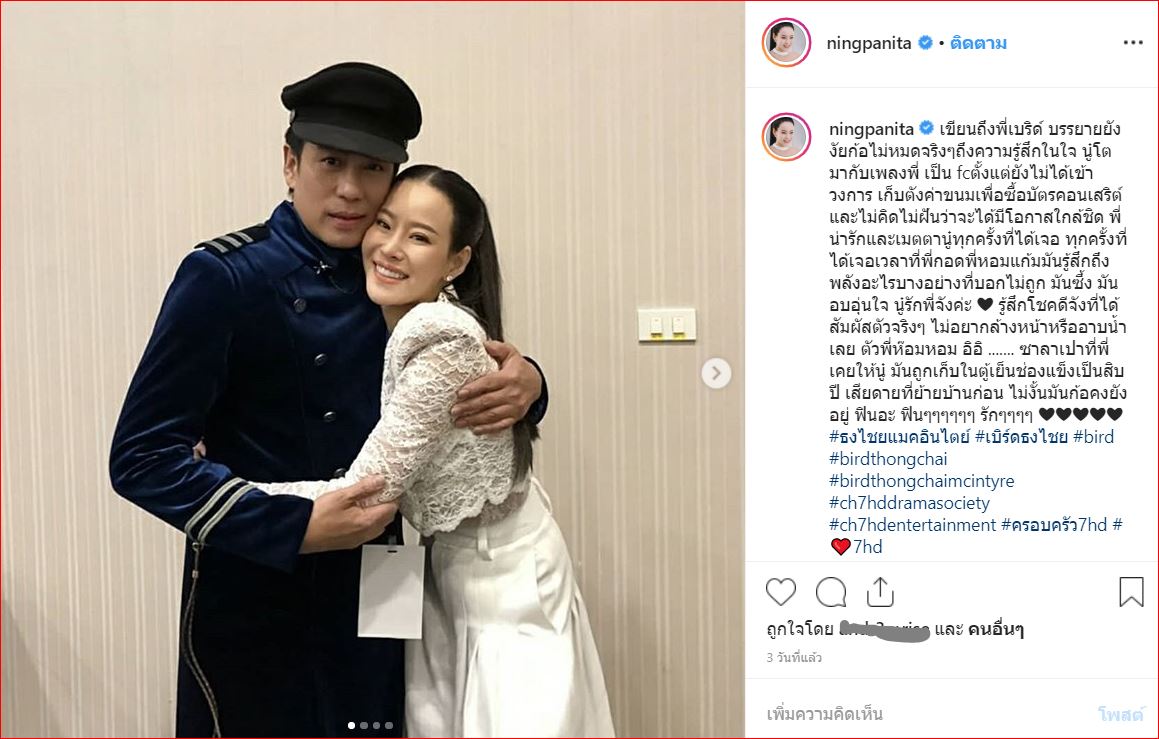 ล่าสุด หนิง ปณิตา มีโอกาสได้เจอพี่เบิร์ดจึงโพสต์ความในใจผ่านอินสตาแกรมว่า เขียนถึงพี่เบริด์ บรรยายยังงัยก้อไม่หมดจริงๆถึงความรู้สึกในใจ นู๋โตมากับเพลงพี่ เป็น fcตั้งแต่ยังไม่ได้เข้าวงการ เก็บตังค่าขนมเพื่อซื้อบัตรคอนเสริต์ และไม่คิดไม่ฝันว่าจะได้มีโอกาสใกล้ชิด พี่น่ารักและเมตตานู๋ทุกครั้งที่ได้เจอ ทุกครั้งที่ได้เจอเวลาที่พี่กอดพี่หอมแก้มมันรู้สึกถึงพลังอะไรบางอย่างที่บอกไม่ถูก มันซึ้ง มันอบอุ่นใจ นู๋รักพี่จังค่ะ