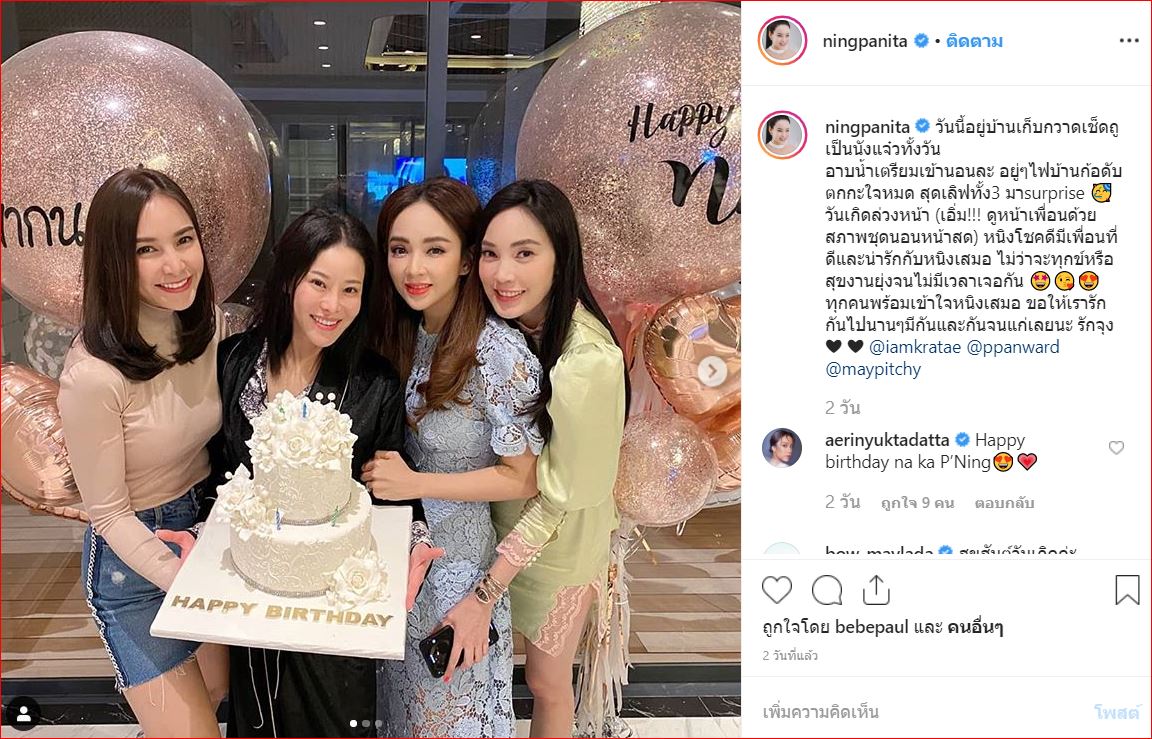 ล่าสุดถ้าใครได้ติดตาม ig ก็จะทราบว่าเมื่อวันที่ 13 ธันวาคม ที่ผ่านมา เพื่อนๆจัดเซอร์ไพรซ์วันเกิดให้ หนิงปณิตา กันไปแล้ว ซึ่งนางโพสต์ระบุว่า วันนี้อยู่บ้านเก็บกวาดเช็ดถูเป็นนังแจ๋วทั้งวัน อาบน้ำเตรียมเข้านอนละ อยู่ๆไฟบ้านก้อดับ ตกกะใจหมด สุดเลิฟทั้ง3 มาsurprise วันเกิดล่วงหน้า (เอิ่ม!!! ดูหน้าเพื่อนด้วย สภาพชุดนอนหน้าสด) หนิงโชคดีมีเพื่อนที่ดีและน่ารักกับหนิงเสมอ ไม่ว่าจะทุกข์หรือสุขงานยุ่งจนไม่มีเวลาเจอกัน ทุกคนพร้อมเข้าใจหนิงเสมอ ขอให้เรารักกันไปนานๆมีกันและกันจนแก่เลยนะ รักจุง @iamkratae @ppanward @maypitchy