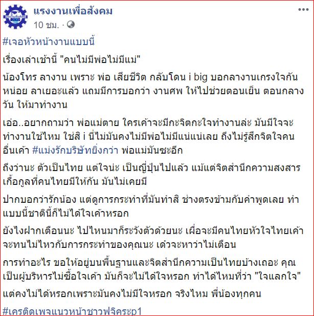 น้องโทร ลางาน เพราะ พ่อ จากไป กลับโดน i big บอกลางานเกรงใจกันหน่อย ลาเยอะแล้ว แถมมีการบอกว่า งานศพ ให้ไปช่วยตอนเย็น ตอนกลางวัน ให้มาทำงาน