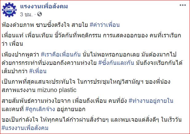 เป็นภาพที่สุดแสนจะประทับใจ ในการประชุมใหญ่วิสามัญฯ ของพี่น้องสภาพแรงงาน mizuno plastic