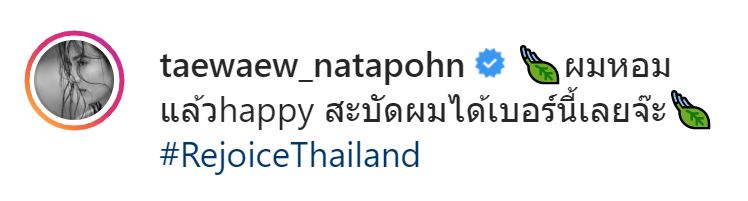 ล่าสุดวันที่ 9 พฤษภาคม ที่ผ่านมา แต้ว ใส่กางเกงขาว + ชุดรัดรูป ออกมาเต้นท่าใหม่ โดยระบุข้อความว่า ผมหอมแล้วhappy สะบัดผมได้เบอร์นี้เลยจ๊ะ