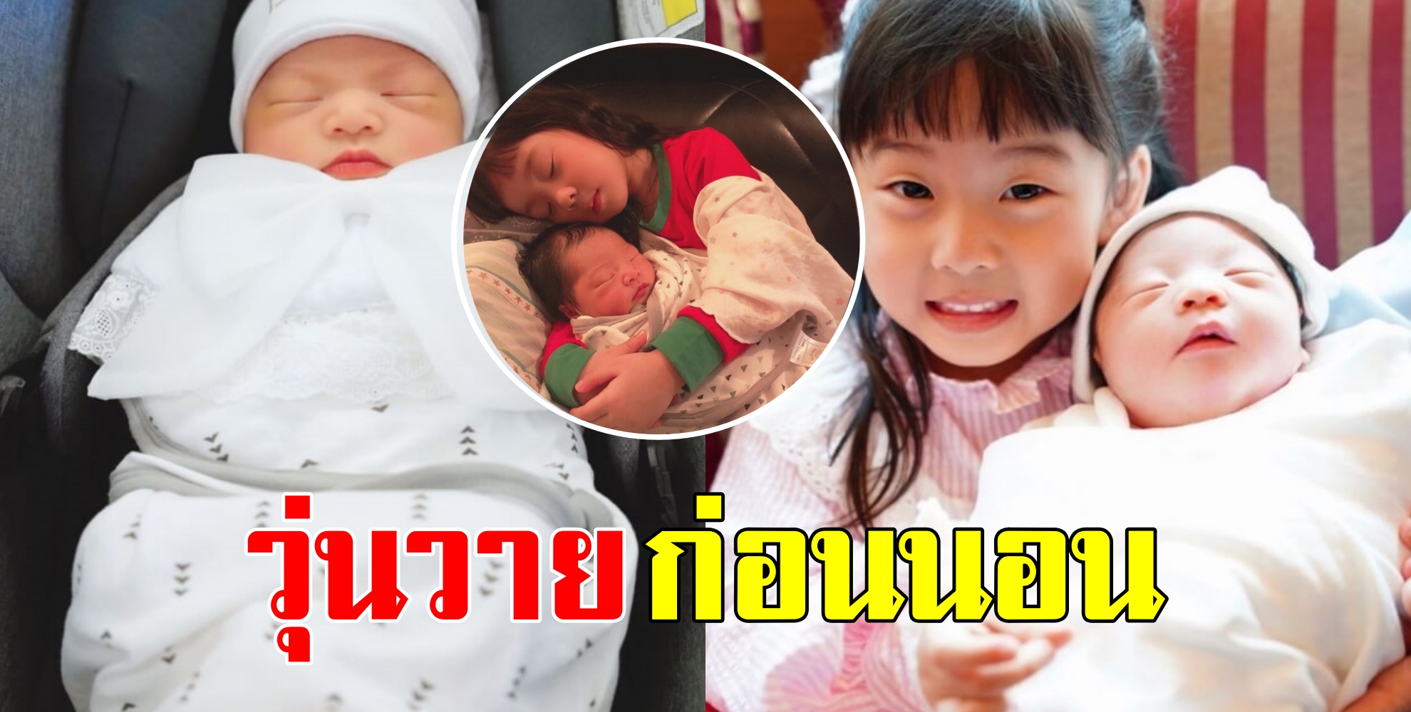 ระบุเเคปชั่นว่า*Good Night เป็นคืนแรกที่ผ่านไปอย่างวุ่นวายมากๆ แต่ก็อบอุ่นหัวใจสุดๆ พี่สาวอย่างเป่าเปาคือน่ารักมากเอ็นดู ตื่นเต้น อยากดูแลน้องตลอด อยากกอดน้อง อุ้มน้อง ไอ้น้องก็เดี๋ยวฉี่ เดี๋ยวอึ เดี๋ยวหิว!!! พี่ก็คิดถึงแม่น้องก็ต้องการแม่กลายเป็นเกาะแม่กันอยู่มะรุมมะตุมแม่กันใหญ่น้องร้องไอ้พี่ก็ร้องด้วยเพราะสงสารน้องและก็อยากให้แม่มานอนด้วยแล้ว!!! สุดท้าย ป๊าพาพี่นอนร้องเพลงแม่กอดน้องนอนใกล้ๆ อะเป็นอันจบ พอหลับพาแยกเตียงนอนได้ที่ใครที่มัน  #วันแรกผัวเมียมองหน้ากันละขำ5555555555 #ggbbpp