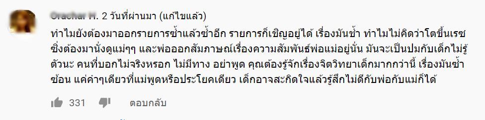 และหลังจากที่คลิปสัมภาษณ์จากรายการ ได้เผยแพร่ออกมายังโลกโซเซียล ก็ทำให้เกิดเสียงวิพากษณ์วิจารณ์กันหนัก เข้ามาถล่มสาวแพท ไม่ว่าจะเป็น แพทสร้างภาพ ชอบเป็นข่าว ไม่เชื่อจบข่าวนี้เดี๋ยวก็มีข่าวอื่นๆออกมาเรื่อยเรื่อย(ส่วนตัวชอบแพทนะ) แต่ระยะหลังชอบปั่นกระแส…แพทหยุดเถอะสงสารลูกชาย, เข้าใจแหละ ทำไมผชถึงไม่กลับมา ยิ่งพูดเหมือนยิ่งประจานตัวเอง จบๆไป
