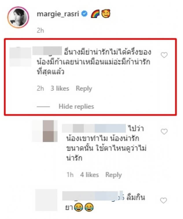 แต่แล้วก็เกิดดราม่าขึ้นจนได้ เมื่อมีชาวเน็ตคนหนึ่งเห็นต่าง ออกมาคอมเม้นท์ว่าน้องมีญ่า ด้วยคำพูดที่ไม่น่าฟังสักเท่าไหร่ว่า “_ีนางมีย่าน่ารักไม่ได้ครึ่งของน้องมีก้าเลยน่าเหมือนแม่อ่ะมีก้าน่ารักที่สุดแล้ว”