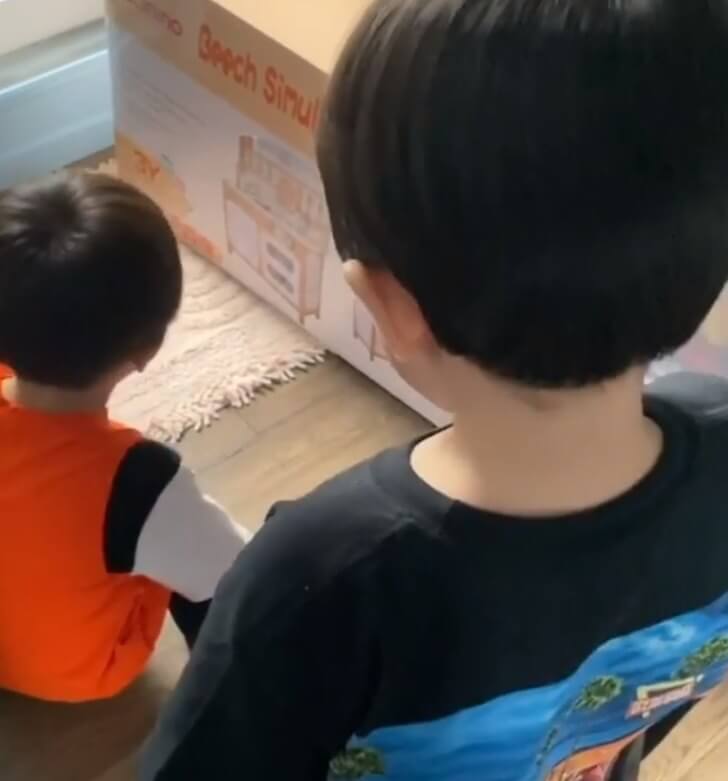 โดยในคลิปจะสังเกตเห็นสายฟ้า และ พายุ ดีใจสุดๆพูดว่า “ของเล่นครัว” แต่พี่พายุขี้สงสัยก็เกิดคำถามว่า “ใครซื้อมาให้อ่ะ” น้าพลอยก็ตอบทันทีว่า “ใครหละ ใครหละ จะใครหละ” ก็ต้องน้าพลอนสายเปย์หลานไงละจ๊ะน้องพายุ น้องสายฟ้า
