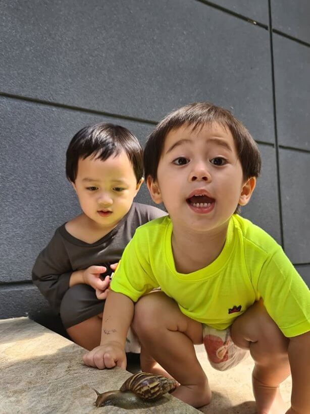 ไม่มีใครไม่รู้จักอย่างแน่นอน สำหรับ คู่ฝาแฝดสุดฮอต น้องสายฟ้า และ น้องพายุทายาทซุปตาร์ตัวแม่ ชมพู่ อารยา และ คุณพ่อน็อต วิศรุต ที่นับวันยิ่งโตขึ้นก็ยิ่งฉายแววความหล่อ จนตอนนี้เป็นขวัญใจของพี่ป้าน้าอา บรรดาแฟนคลับไปทั่วแล้ว ซึ่งในช่วงกักตัวแบบนี้ แม่ชมมักพาลูกๆทำกิจกรรมแบบเรียบง่ายกัน ที่บ้านของคุณยาย