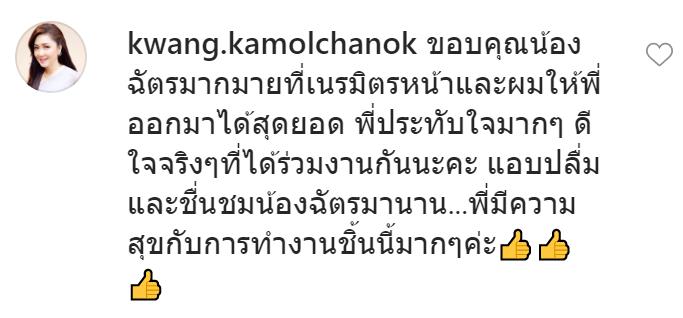 และล่าสุด สาวกวาง ก็ขอทวงบัลลังก์ความสวยหน้าเด็กอีกครั้ง ในวัย 53 ปี โดยเจ้าตัวได้ลุกขึ้นมาแปรงโฉม ถ่ายแฟชั่น โดยมีช่างแต่งหน้ามากฝีมือ อย่าง น้องฉัตร มาทำการแปรงโฉมให้ในการถ่ายแบบครั้งนี้ โดยน้องฉัตร ได้ลงภาพในอินสตาแกรม พร้อมกับเขียนข้อความว่า “Makeup and hair คุณกวาง กมลชนก @kwang.kamolchanok นางเอกในตำนาน ใครยังจำ อังศุมาลิน เว่อร์ชั่น คุณกวาง และพี่เบิร์ด ใน “คู่กรรม” ได้บ้างครับ?