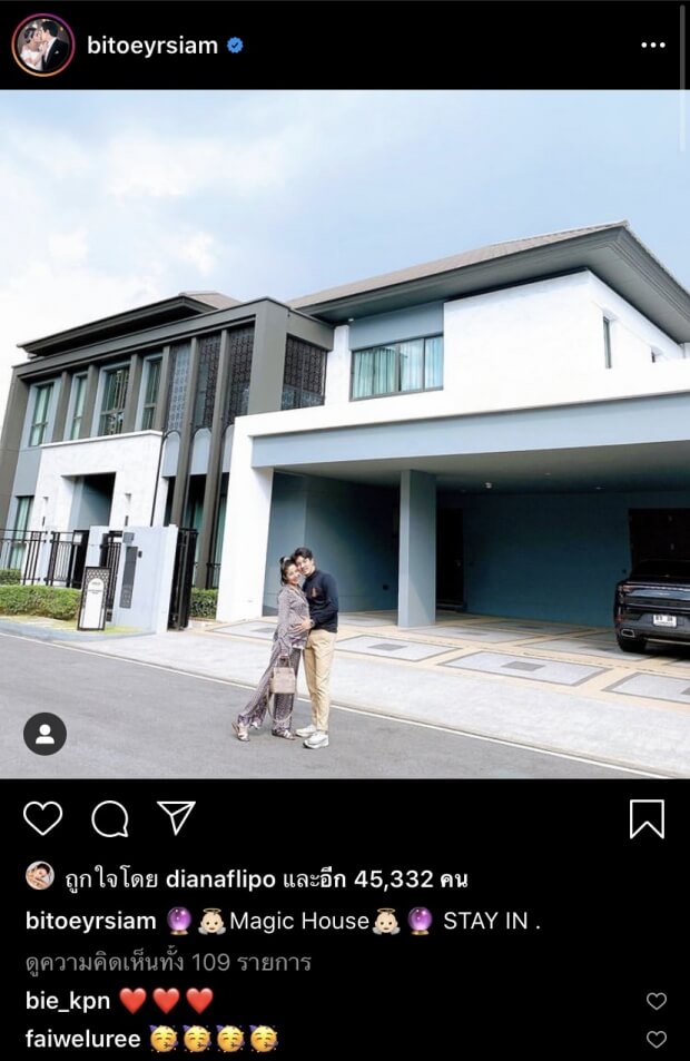 และล่าสุด สาวใบเตยก็ได้ออกมาเคลื่อนไหว อัพเดทบ้านหลังใหม่ ที่ดูน่าอยู่สุดๆ โดยบ้านหลังนี้ เธอและสามีจะย้ายเข้าอยู่ หลังจากที่ สาวใบเตยคลอดลูกสาวคนแรก โดยเธอได้ระบุข้อความว่า “Magic House STAY IN .