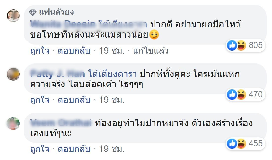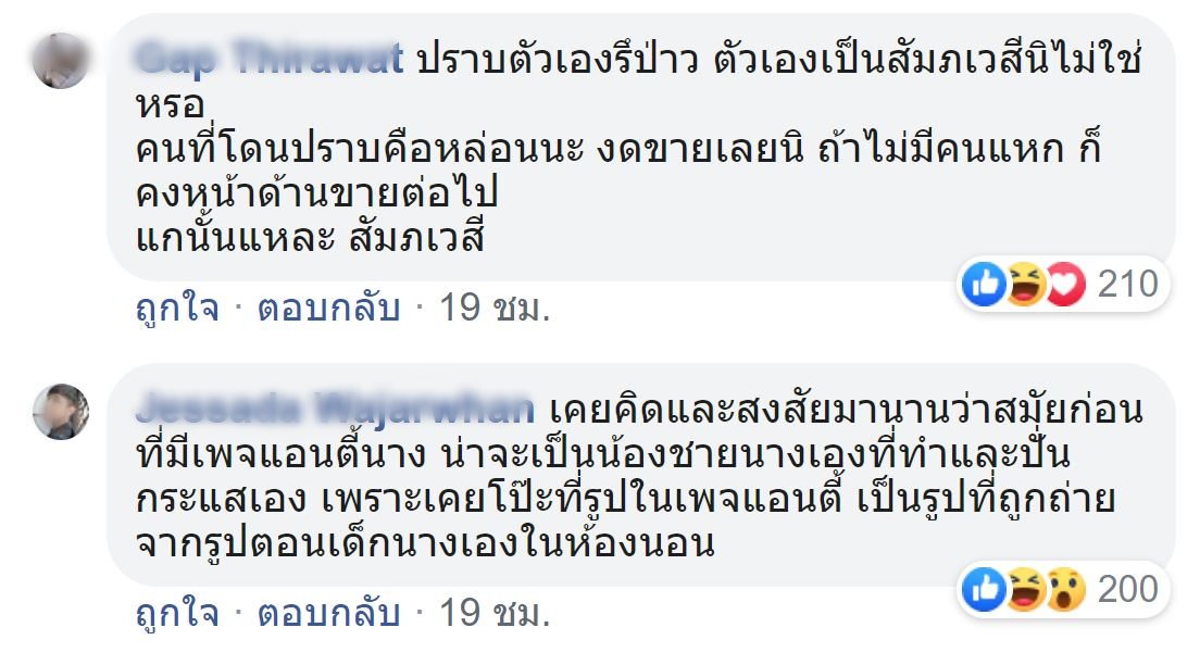ความคิดเห็นชาวเน็ตบางส่วนจากเพจใต้เตียงดารา