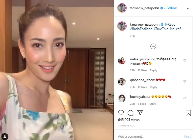 อย่างเช่นล่าสุด แต้วได้กลับมาเต้นอีกแล้ว หลังจากหายเงียบไปพักหนึ่ง ไม่แน่ว่าแต้วอาจหายไปคิดท่าเต้นใหม่ๆมาก็เป็นไปได้ เท่าที่ผ่านมาแต้วก็ทำได้ดีมาก เพราะแต่ละคลิปก็มีคนดูหลังแสนทั้งนั้น และคลิปนี้แต้วได้เขียนแคปชั่นเอาไว้ว่า @Rado #RadoThailand #TrueThinLineLeaf ซึ่งเป็นการเต้นแบบยั่วๆบดๆขยี้ใจไปกันเลยจ้า