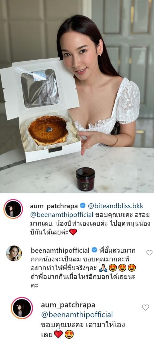 และล่าสุด ก็ทำเอาบีน้ำทิพย์ กรี๊ด หนักมากหลังจากที่เธอ ได้เดินทางนำชีสเค้ก ของร้านตัวเองไปส่งให้ กับซุปตาร์ตัวแม่ของวงการบันเทิงไทย อย่าง อั้มพัชราภาไชยเชื้อ งานนี้ทำเอาเจ้าตัวถึงกับอดใจไม่ไหว ที่จะอัดคลิปโพสต์ลง IG ส่วนตัวให้แฟนคลับได้เห็นกัน