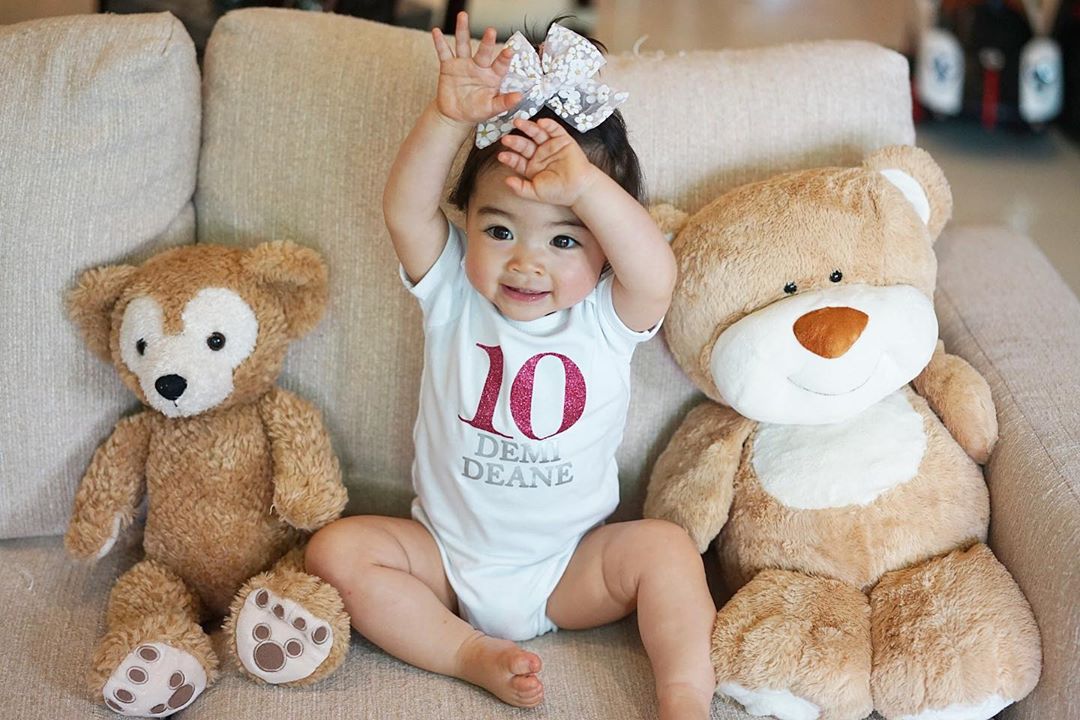 พร้อมกับอัพเดทภาพความน่ารักของลูกๆให้ได้ชมกันซึ่งเด็กทั้งสองดูสนุกสนานกันมากและล่าสุดก็ทำเอาบรรดาแฟนคลับการกดไลค์กันรัวๆเมื่อสาวน้อยแป๋วแหววสุดน่ารักอย่างน้องเดมี่ซึ่งในวันนี้ 16 มิถุนายน 2563 ก็ อายุครบ 10 เดือนเต็ม