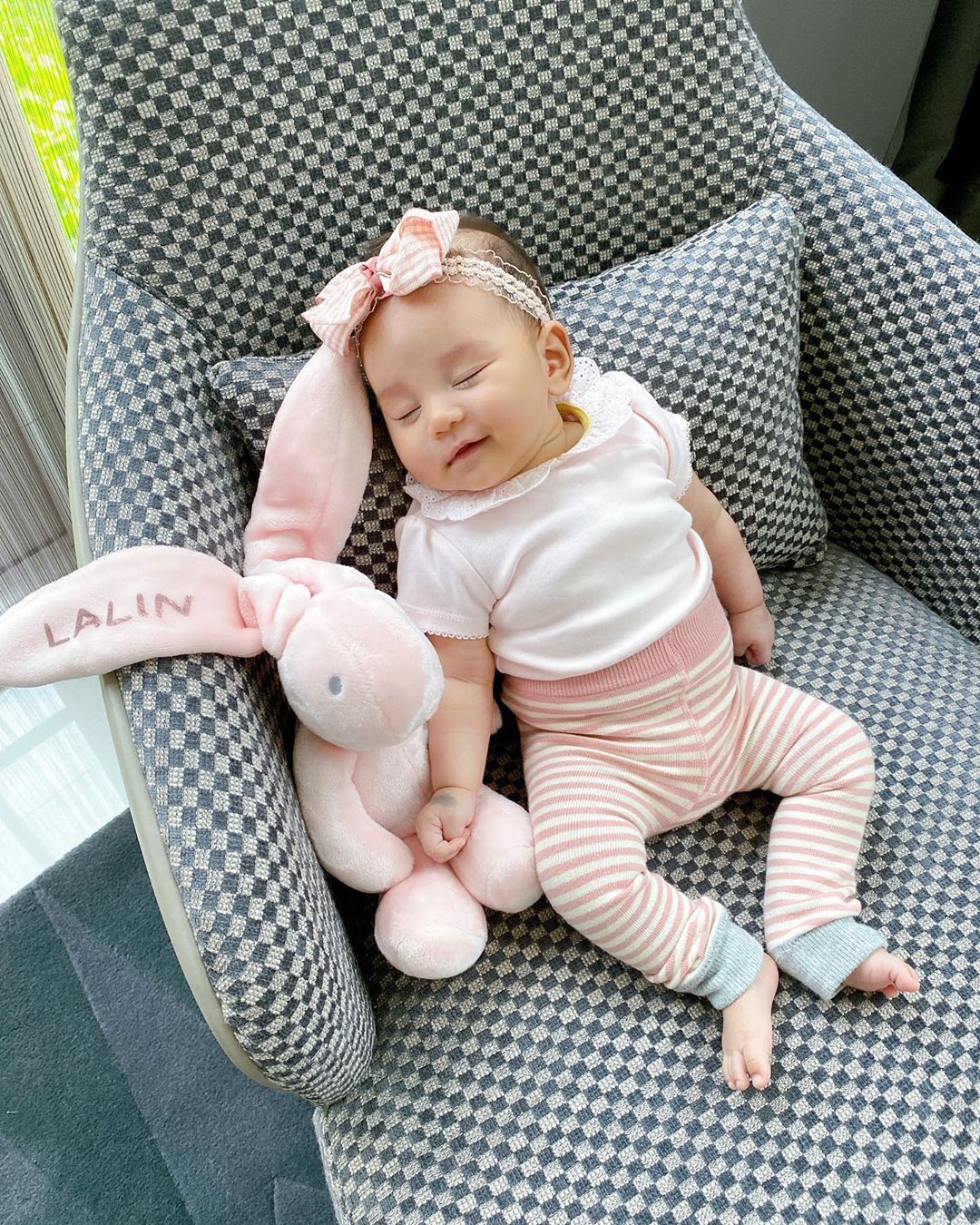 น้องลลิณขนาดนอนหลับตา พร้อมกับยิ้มหวานๆอีกทั้งยังเผยให้เห็นว่าขนตาของน้องลลิณนั้นยาวมากๆเรียกได้ว่าเป็นอีกหนึ่งสาวน้อยหน้าหวานที่สวยตั้งแต่เด็กเลย