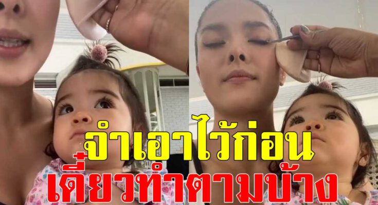 ฟูมฟักรักจำ น้องเดมี่ นั่งดูแม่ ลิเดีย แต่งหน้า แป๋วแหว๋วจ้องตาไม่กระพริบ