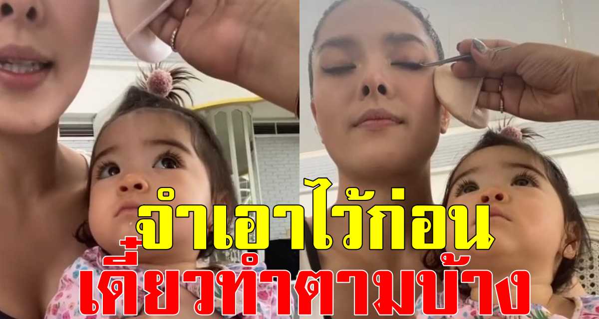 ฟูมฟักรักจำ น้องเดมี่ นั่งดูแม่ ลิเดีย แต่งหน้า แป๋วแหว๋วจ้องตาไม่กระพริบ