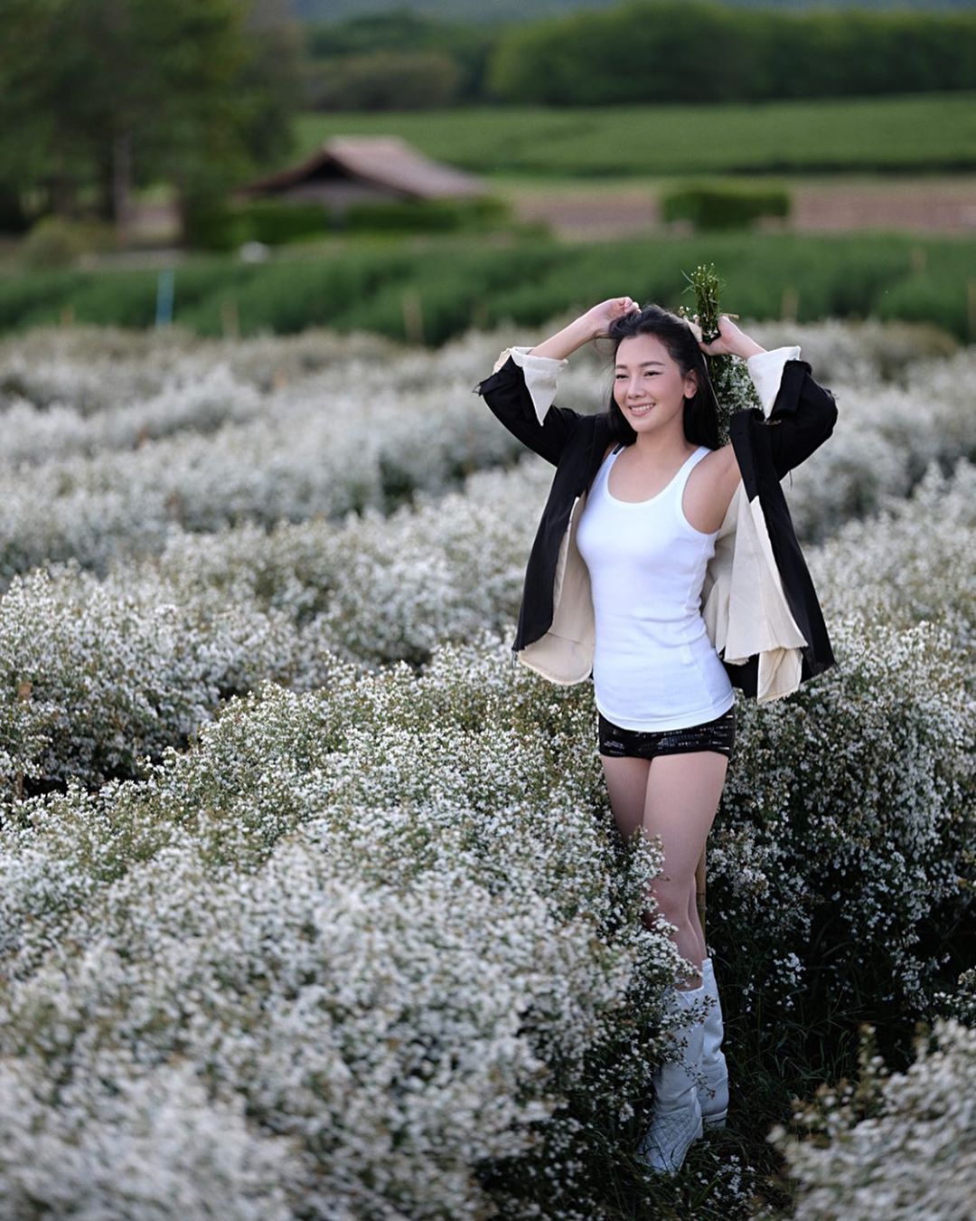 ใครที่ได้ติดตามความเคลื่อนไหวในอินสตาแกรมส่วนตัว ก็จะเห็นได้ว่า [wps_highlight background=”#fff787″ color=”#000000″]ล่าสุดเธอได้ออกมาอัพเดทภาพตัวเองพร้อมกับวิวสวยๆ ที่ สิงห์ปาร์ค เชียงราย ที่ต้องบอกว่าเป็นภาพที่ทำเอาบรรดาแฟนคลับต่างเข้ามาถูกใจกันแบบรัวๆ เป็นภาพที่สาวนุ่น ยืนโพสท่าสวยๆ อยู่ท่ามกลางสวนดอกไม้ ในเสื้อกล้ามสีขาวกางเกงตัวจิ๋ว[/wps_highlight]