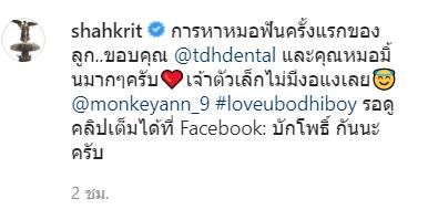 และล่าสุดทาง อินสตาแกรม ของคุณพ่อชาคริตก็ได้มีการออกมาเผยปฏิกิริยาของลูกชายสุดที่รักกับการพาไปพบหมอฟันเป็นครั้งแรกที่ต้องบอกเลยว่าทำเอาคุณพ่อประทับใจในตัวลูกชายมากเพราะว่าน้องโพธิ์ไม่ซนหรืองอแงแม้แต่นิดเดียวว่าแล้วเราไปชมคลิปเหตุการณ์ได้พร้อมๆกันเลย
